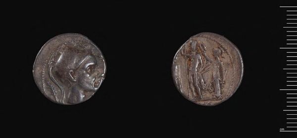 Curator: This is a Hemidrachm of Phokis under Phayllos, currently housed in the Harvard Art Museums. What strikes you first about this ancient coin? Editor: It feels weighty, you know? Not just physically, but emotionally. The bull has this raw power, yet the woman's profile on the other side is so refined. It’s a heavy dichotomy. Curator: Indeed. The obverse displays the head of a bull, likely a symbol of the region's agricultural wealth. The reverse features a woman's profile, perhaps a nymph or deity. Editor: The nymph almost feels like she’s sighing, trapped on this small piece of metal, while the bull is ready to charge. It's like a mini-drama is playing out. Curator: The artist's skill in capturing such nuanced expression within such a small space is remarkable. Editor: Absolutely. It's a tiny window into a whole world of stories and feelings. Curator: Precisely, and that's what makes it enduring. Editor: You feel that?