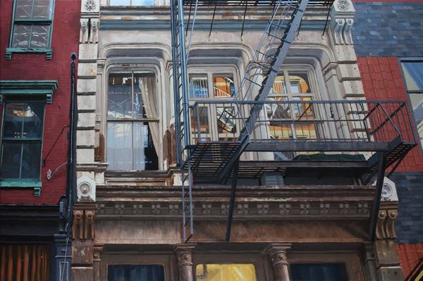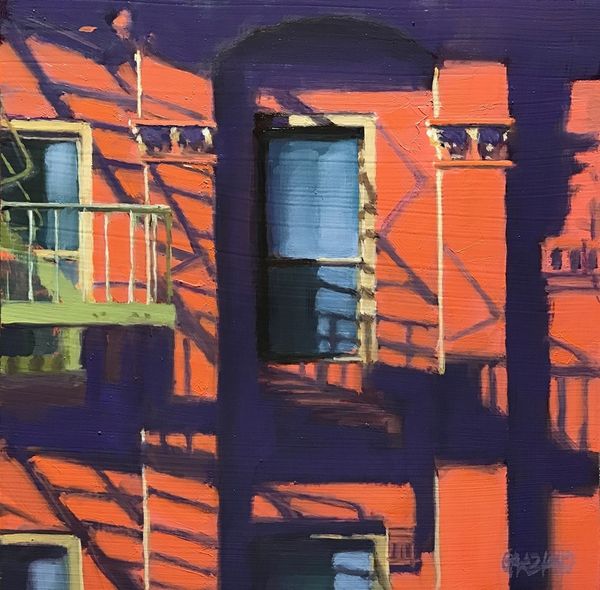 Dan Graziano captured this balcony in Charleston, likely in the late 20th or early 21st century, using oil on canvas. In this work, the artist’s concentration on capturing the architectural details allows the artist to explore themes of light and shadow and to suggest that the viewer looks at a domestic space in a specific way. Charleston is a city steeped in history, notably as a major port in the slave trade and as the place where the first shots of the Civil War were fired. Architecture like this reflects a specific set of social and economic structures, which carry implications about ownership, class, and labor. The balcony, usually a space for leisure, reminds us of the city's complex past and present. Art historians might explore city archives, architectural surveys, and historical census data to understand the cultural context of this work more thoroughly. By studying the image, we can better understand the power of art to reflect the narratives of our societies.