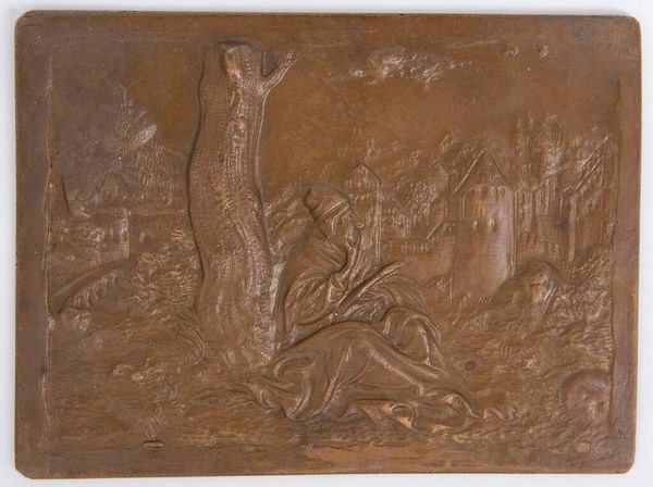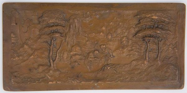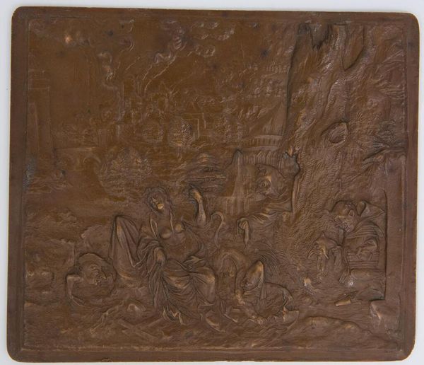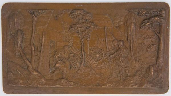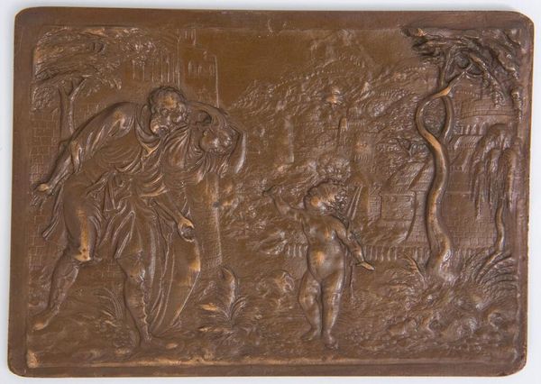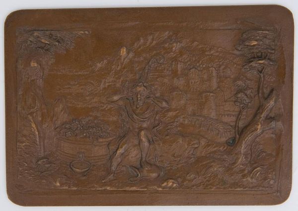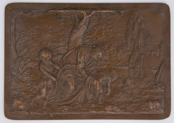 Editor: This is "Noah's Shame," from the "Old Testament Subjects" series. It's a small bronze relief at the Harvard Art Museums, and I find it so intriguing. What social commentary do you think this anonymous artist was trying to convey? Curator: This piece offers a lens into historical power dynamics and societal norms. How might it reflect anxieties around patriarchal structures or the transgression of social boundaries, particularly within the context of religious narratives? Editor: That's a great point. It makes me wonder if the artist was challenging the traditional interpretations of the story. Curator: Exactly! And considering its time, what could this piece reveal about identity, shame, and judgment? Perhaps the artist is inviting us to question established narratives. Editor: I'm definitely seeing this in a new light now. Thanks! Curator: Indeed, art like this provokes critical conversations about culture, ethics, and our shared human experience.