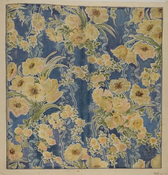 John Henry Dearle created "Compton," a textile, showcasing a dense, all-over floral pattern. The surface bursts with creamy blossoms, fiery orange tulips, and a subtle interplay of greens and blues, creating a harmonious visual rhythm. The tightly interwoven composition reflects the Arts and Crafts movement's interest in organic forms and intricate design. The structure here isn't just decorative; it's a statement. The dense layering complicates the traditional figure-ground relationship, challenging the eye to discern individual elements within the unified field. This echoes a broader intellectual shift towards understanding systems and structures, not just isolated objects. Dearle's design destabilizes conventional notions of depth and perspective, favoring a flattened, ornamental space. "Compton" offers a rich tapestry of signs, inviting us to consider how these visual codes reflect and shape our understanding of nature, beauty, and the very fabric of our designed world.