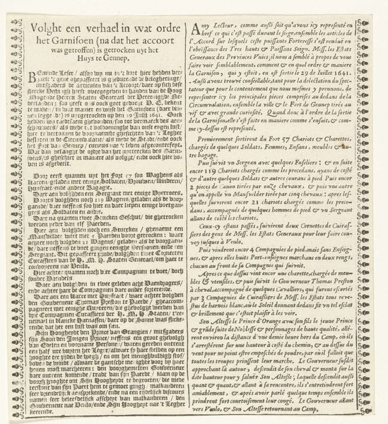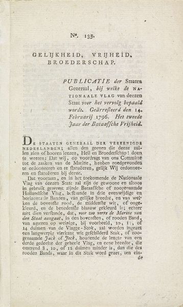 This is a fragment of a newspaper, printed by Johannes de Groot en Zoonen around 1797, using moveable type. The high-contrast black ink on off-white paper speaks to a process of mass production, essential for disseminating information widely. The dense columns of text reveal the labor involved in typesetting each letter, line by line. Consider the social context: this was a time of revolution, and the printing press was a vital tool for shaping public opinion. The material itself, cheap and reproducible, allowed for the spread of ideas, influencing political discourse and social change. Note how the printer’s mark at the bottom proudly declares their role in this process. The imperfections and wear of the paper further emphasize the ephemeral nature of news, intended for immediate consumption, yet now a historical artifact. This piece challenges the traditional hierarchy of art, elevating a common, functional object to a significant cultural document, reflective of the era's values and the labor that sustained it.