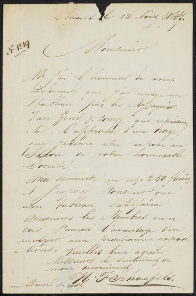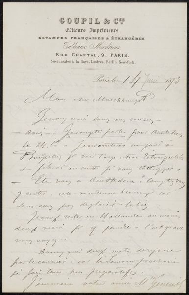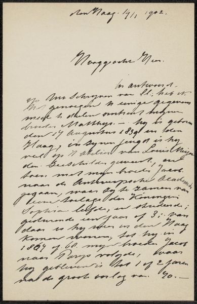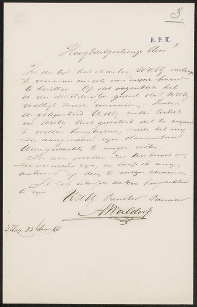 This is a letter by Adolphe Mouilleron to Jan Hendrik Maschaupt, undated, at the Rijksmuseum. Its visual presence hinges on a play between the stark white paper and the calligraphic dance of the dark ink. The composition is simple: tightly packed lines march down the page, guiding the eye with a rhythm of loops and strokes. The form of the handwriting itself becomes a visual element, each word a tiny drawing, revealing the writer’s hand and mood. This intimate, personal form allows us to consider the semiotics of letter-writing and communication itself. The artist uses line and form to destabilize the cold, impersonal nature of formal communication and instead creates something immediate and human. Consider how the visual weight of the ink against the void of the paper creates a tension, a dialogue between presence and absence. This tension mirrors the act of communication itself, bridging distances and intimating thoughts across time and space. The letter is not just a message, but a carefully rendered artifact.