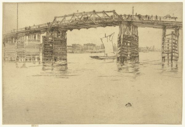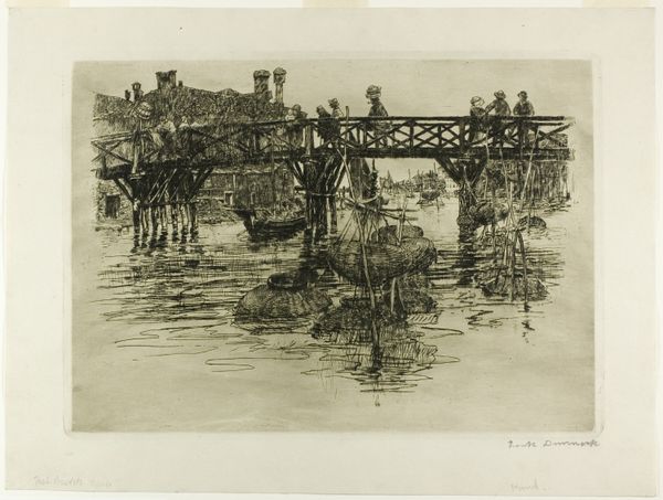 Muirhead Bone made this etching of the Auld Brig in Ayr using delicate lines to capture the scene. The act of repairing itself becomes part of the story, a visible process, as Bone coaxes forth a vision of labor and restoration. Look at how Bone uses the etching needle, it’s like he's sketching right onto the plate. It's all about the touch, the pressure, the speed—the kind of immediate, physical relationship to the medium that I totally dig. See how the bridge's skeleton is exposed, almost like an anatomical drawing? Those lines aren't just describing the bridge; they're also revealing its structure, its bones, quite literally. The reflections in the water, those aren't just reflections; they’re a kind of ghost image, a reminder of what was and what will be. Bone reminds me a bit of Piranesi, with that same obsessive attention to architectural detail, but with a more human touch. He invites us to contemplate not just the finished structure but also the messy, beautiful process of its making.