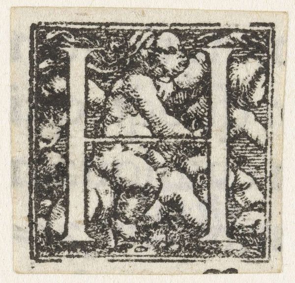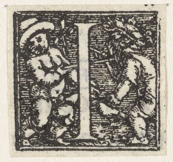Editor: This is "Letter S met kind spelend op trommel en kind blazend op fluit," or "Letter S with child playing drum and child blowing flute," an engraving by Hans Holbein the Younger, made sometime between 1522 and 1524. It feels almost like a hidden image—at first I just see the 'S,' then the children pop out of the ornate background. What stands out to you? Curator: It's fascinating how Holbein uses the letter form as a stage for these playful children, isn't it? Considering the period, and that Holbein was working during the Reformation, these images likely served multiple purposes beyond mere decoration. We have to think about the function of art in a society grappling with religious upheaval and new ideas about childhood. Does this suggest a broader interest in education? Or morality? Editor: I hadn’t considered the Reformation's impact. The children playing musical instruments seem innocent enough. Could that innocence be a message of sorts? Curator: Precisely. Think about the rise of humanism and its emphasis on classical learning and civic virtue. These images could be visual reminders of the importance of education and moral development, disseminated through print culture. And how would these relatively inexpensive prints be viewed at the time in domestic environments? Who was their intended public? Editor: So, beyond just being aesthetically pleasing, it might have been trying to communicate values within a changing social and religious landscape? Curator: Exactly! The image is a powerful convergence of art, education, and the socio-political climate. It's a wonderful example of how seemingly simple images can reveal complex historical dynamics when you start asking the right questions. Editor: It makes me rethink how art can influence how people view their own society. Thanks for offering this perspective. Curator: My pleasure. It is an important message to remember!