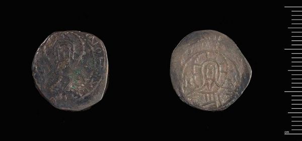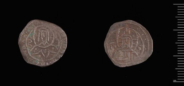 Curator: Here we have a Half-Stavraton of Manuel II from the Harvard Art Museums. It's a small, silver coin bearing what appears to be a highly stylized imperial portrait. Editor: My first thought is that it feels haunting. The silver is worn, the figures are barely legible, yet the weight of history is palpable. Curator: Absolutely. Think of what this object represented. It wasn’t merely currency, but the enduring image of the emperor, a symbol of power and continuity amid the slow decline of Byzantium. Editor: I'm struck by the level of abstraction. The geometric shapes and lines are almost hieroglyphic. One must really search to find the face, the crown. Curator: The imagery connects to a long line of imperial iconography. The rendering of the emperor, however simplified, invokes a lineage stretching back to Rome. Editor: It's remarkable how such a diminutive object can contain such a potent blend of artistic intention, cultural significance, and emotional resonance. Curator: Indeed. The Half-Stavraton serves as a tangible reminder of the ways that symbols shape our understanding of the past. Editor: And how artistic form transmits cultural memory, even in the most humble of materials.
