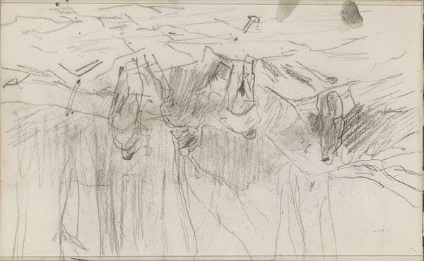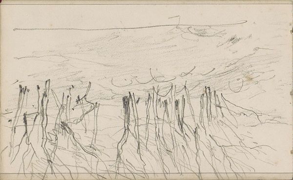 Curator: Before us, we see "Landschap met bomen", or "Landscape with Trees", created sometime between 1848 and 1888, courtesy of Anton Mauve. It's rendered in graphite pencil on paper and currently resides here at the Rijksmuseum. Editor: Immediately, I am struck by the starkness, the raw energy in these lines. It feels like a glimpse into the very soul of the landscape, rendered in its most elemental form. There is a quiet but assertive quality to the organic shapes. Curator: That's interesting. Considering Mauve's influence within the Hague School, we must contextualize his art as a representation of Dutch rural life. The drawing on paper itself democratizes artistic creation, diverging from established practices towards wider cultural access. This challenges the elite nature of art institutions. Editor: Absolutely. Moreover, consider how the focus on nature, and trees particularly, has often symbolized strength and endurance across different cultures. I see hints of resistance here – these gnarled branches fighting against an unseen force, resonating perhaps with contemporary discussions around environmental struggles and the resilience of marginalized communities against capitalist forces. Curator: I appreciate your reading. But I believe that this landscape could reflect back to social circumstances experienced at the time, when agricultural landscapes were enduring transformations, influencing rural existence. Here, Mauve’s creative exploration may underscore not only resilience but also community adaption towards broader transformation of power systems affecting lived experiences. Editor: I'd counter that artistic statements, even those emerging from specific temporal contexts, gain multilayered significance across history, reflecting ongoing battles against domination. Perhaps Mauve might have wished to draw broader associations. Curator: While there are certainly interpretations possible, it's worth investigating how these drawings informed future landscapes and perhaps stimulated environmental sensitivity during increasing urbanization at the time. Editor: True, it gives me a lot to reflect on in my work. Thank you! Curator: And to me, it is invaluable contextualization of the impact on landscape paintings influencing future creative generations.