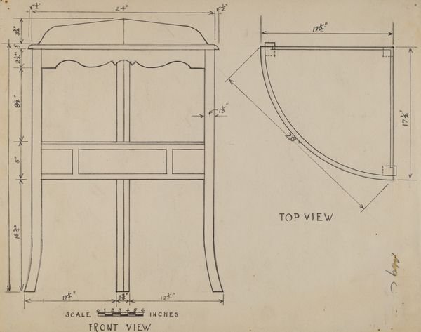 Jack Carr, who lived an impressively long life, made this plan for a card table, likely in 1936. It’s a lovely drawing; a bit technical, with all the measurements, but also so free and intuitive. You can almost feel the hand moving across the paper. I love the way the table is represented from different angles, like a Cubist painting. It’s not just a representation of an object, but an exploration of form and space. Look at the open top, how it curves and extends into the surrounding area. It's like Carr is thinking out loud, letting us into his process. The marks aren't precious; they're about figuring things out. There is a sense of playfulness and curiosity that is contagious. This drawing reminds me of early technical drawings, but the hand-drawn nature also lends it a folk-art quality. It’s not perfect or precise, but it’s full of character. Maybe that’s what makes it so appealing, and that’s what art can be at its best.