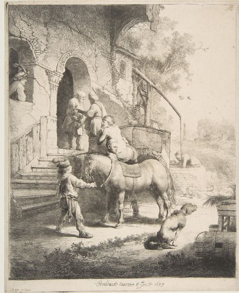 Karel du Jardin painted this scene of a Mounted Trumpeter taking a Drink, rendered in oil on canvas, sometime in the 17th century. The image centers around a trumpeter pausing for refreshment, an action laden with symbolic weight. Notice the cup, raised high, a gesture echoing ancient libations and toasts to the gods. This act, seemingly simple, harkens back to classical rituals of offering, where the pouring of liquid symbolized reverence and communion. Consider how this motif appears in countless other artworks, evolving from sacred offering to celebratory gesture, shifting in meaning yet retaining its primal connection to sustenance and social bonding. The act of drinking, in this context, becomes a powerful force, engaging us on a subconscious level, triggering memories of shared experiences and communal rituals. This isn't merely a man quenching his thirst; it's a symbolic act resonating through time.