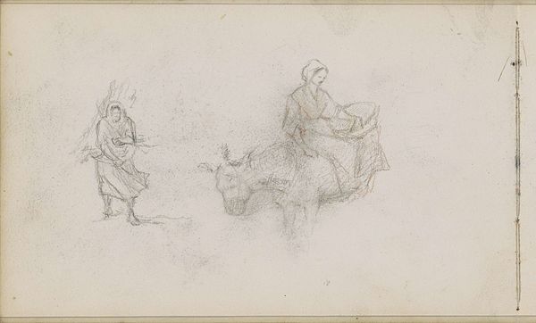 Stefano della Bella created this etching, "Two Gypsy Women with Child," using metal, acid, and ink sometime in the mid-17th century. Etching is an indirect process, reliant on the controlled corrosion of a metal plate. The artist covers the plate with a waxy, acid-resistant ground, then draws through it with a sharp needle. The plate is then immersed in acid, which bites into the exposed lines. Ink is then applied, filling these grooves, and the surface is wiped clean. The image transfers to paper under the intense pressure of a printing press. The crispness of the lines here is crucial. Notice the contrast between the figures and the empty space around them; this contrast is what gives the work its vitality. Although it's a relatively quick method, etching demands a high degree of skill. This print testifies to the rich culture of reproductive printmaking in early modern Europe, which depended on specialized labor and artistic vision. It is a reminder that even small works on paper can be powerful documents of lived experience.