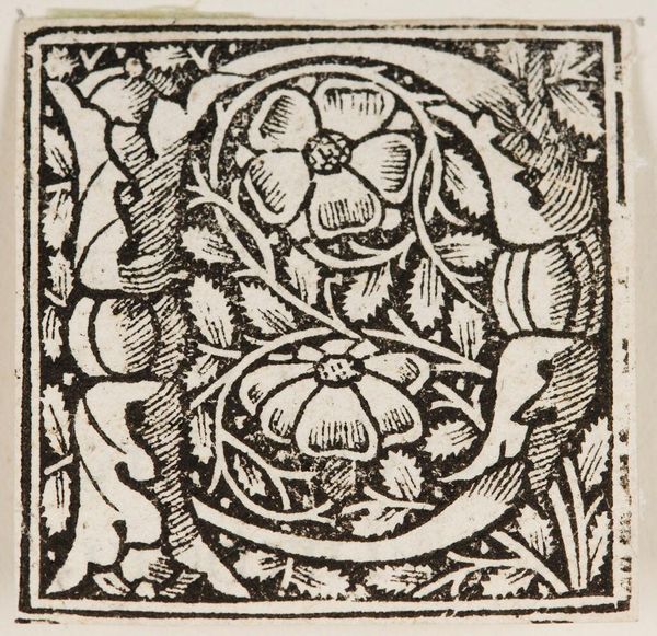 Curator: Look at this Initial A, created by an anonymous artist. I see a letterform transformed by organic life, the A itself like a living entity. Editor: There’s something quite unsettling about this, isn't there? It feels like a power struggle. Curator: Indeed. Notice the twisting vines and the creature intertwined with the letter. It evokes a sense of both growth and constraint. Editor: It's as if the artist is commenting on how societal structures, symbolized by the letter A, can simultaneously nurture and imprison. The flora and fauna struggling against the rigid form. Curator: Yes, and that struggle points to a deeper meaning. The initial marks a beginning, but here, it's a beginning fraught with conflict. Editor: Right, a beginning weighed down by historical baggage. I find myself wondering about the context in which this image was created and what those original viewers might have read into it. Curator: A fascinating piece, revealing the complex relationship between form, nature, and meaning. Editor: It certainly challenges our notions of simple alphabet imagery, doesn't it? It's a potent visual statement.