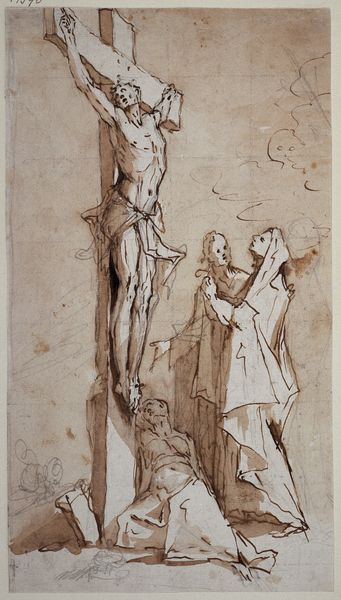 Editor: This is Lady Edna Clarke Hall’s drawing, Catherine and Heathcliffe as Children. It's a quick sketch, very linear. Heathcliff seems to be sewing. What does this image convey to you? Curator: Notice the raw quality of the line, the exposed paper. It points to the means of production, the artist's hand and the immediate social function of domestic labor. Hall subverts the expectation of gendered roles, Heathcliff’s sewing challenges that boundary, doesn't it? Editor: That’s an interesting point; the sewing does seem to challenge his masculinity. Curator: The drawing itself is a material act, a product of labor and consumption, reflecting the artist’s engagement with the domestic sphere and social critique. Editor: I hadn't thought of the drawing as a product, but it is literally made with materials. Thanks!