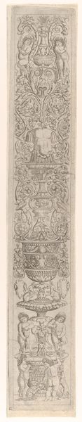 Heinrich Aldegrever made this panel with leaf tendrils and grotesques, using engraving techniques, in the sixteenth century. Aldegrever lived during a time of significant religious and social upheaval, including the Protestant Reformation, which profoundly influenced artistic expression. Ornamentation in art was important to the people of the Northern Renaissance. Panels like this provided patterns for artisans. The grotesque style, with its playful combinations of human, animal, and plant forms, allowed for the free play of imagination and the subversion of established norms, but these often upheld power for the patriarchy. Although the ornament's function was primarily decorative, it also symbolized the cultural anxieties of the time. Grotesques, in particular, served as a reminder of the limits of human reason and the ever-present possibility of chaos and disorder. This little panel is a reminder that even in the smallest details, art can reflect the complex interplay of identity, history, and power that shapes our world.