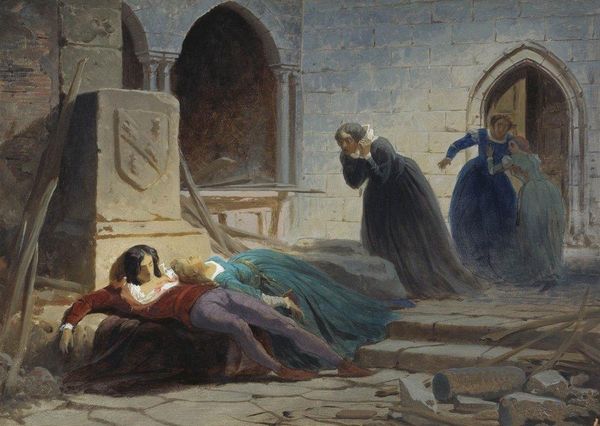 Editor: We're looking at Ilya Repin's oil painting, "Boris Godunov with Ivan the Terrible" from 1890. There's a palpable sense of unease, almost paranoia, in this dimly lit scene. What can you tell us about its context and interpretation? Curator: The tension you sense is absolutely key. Repin's choice to depict this historical encounter is ripe for analysis. Consider the power dynamics at play: Ivan the Terrible, a figure synonymous with autocracy and violence, seated, observing, while Boris Godunov, a man who would later become Tsar amidst suspicion, stands before him. How might Repin be critiquing the nature of power and succession within Tsarist Russia itself, especially considering the sociopolitical turbulence of late 19th-century Russia? Editor: So, beyond the immediate historical narrative, you see it reflecting on the nature of power structures generally? Curator: Exactly. The historical context provides a lens through which we can examine broader issues of authority, legitimacy, and the cyclical nature of political anxieties. What does the painting suggest about how societies grapple with legacies of oppression, and the ways in which past traumas continue to haunt the present? Editor: That makes me look at the figures differently, noticing how isolated they seem even within a crowd. How much did Repin's personal politics influence this work? Curator: Repin was painting at a time of rising social consciousness and revolutionary fervor. Examining his broader body of work, we see a critical eye turned towards societal inequalities and the plight of the marginalized. This painting becomes not just a historical record but an implicit commentary on the burdens of leadership and the moral compromises often demanded by political power. Does recognizing that lens shift how we consider the narrative choices that he makes in depicting these figures? Editor: It definitely adds a layer of complexity to how I understand Repin’s goals for this painting, thinking about Russian society and its future rather than the past alone. Curator: Precisely. This is how art encourages us to look critically at the past and reflect on our own present.