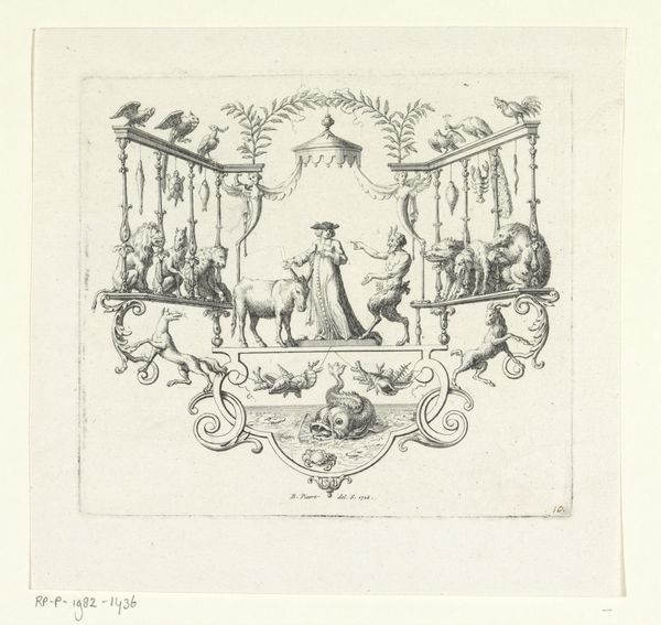 This print, "Divinité Chinoise," was made by Gabriel Huquier sometime before 1772, using etching and engraving. The network of fine lines creates a delicate, almost dreamlike image. Look closely, and you'll see how the controlled bite of acid on the metal plate allows for incredible detail. Notice the intricate rendering of foliage, architectural elements, and decorative motifs. Huquier was a master printmaker, catering to the 18th-century taste for chinoiserie. The image draws on European fantasies about Asia, specifically China. But the print itself was made using techniques developed in Europe. The linear precision and replicability of printmaking lent themselves well to the production of decorative schemes for wealthy patrons. Prints like this one fueled the desire for exotic ornamentation. This print exemplifies the meeting of fantasy and facture, reminding us that even the most seemingly straightforward images are the product of cultural exchange and complex labor.