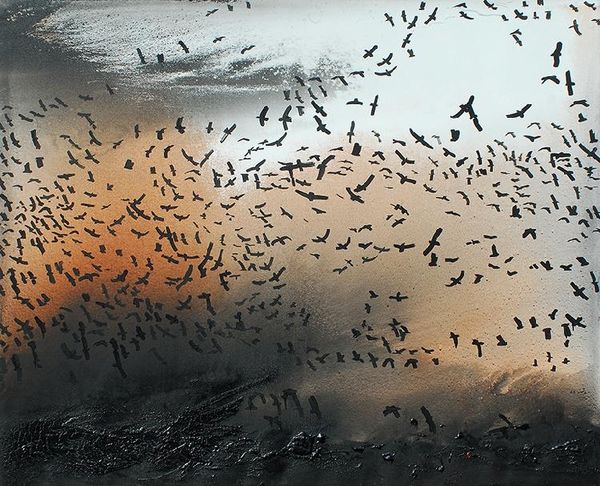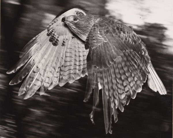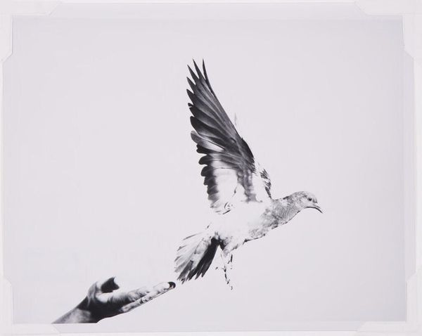Editor: We’re looking at Hans Haacke's "Live Random Airborne System, November 30, 1968," a black and white photograph. It shows what looks like a flock of birds diving into water – there's so much splashing. It's almost chaotic, an energy caught in a still image. What do you make of this piece? Curator: Well, my friend, it's interesting, isn’t it? It’s not just chaos frozen but also an orchestration of the random. Think of it as Haacke composing with the elements – air, water, life itself. It’s 1968; boundaries are being questioned everywhere. Do you see any hint of it in how the moment defies the conventional expectation in photography? Editor: That's a great way to put it. I guess it makes me consider, beyond the beautiful snapshot, is there something conceptual going on? Curator: Ah, precisely. With the title stating 'Live Random Airborne System', isn't that a hint from the artist himself? It's not *just* documentary; it's highlighting a system, the way chance encounters generate events. Each bird acting according to its individual needs, yes, but still part of this unpredictable dance. Makes you think, doesn’t it, about the bigger systems at play in society, in the world? What do you think the artist tried to invite us to do by making an exhibition out of such chaotic natural moment? Editor: To contemplate those bigger systems maybe. This reminds me of systems theory, trying to capture patterns from the unpredictable. Thanks, I'll remember that. Curator: Glad I could paint the picture for you. Looking forward to what insights we unravel together next!