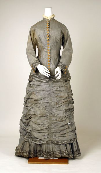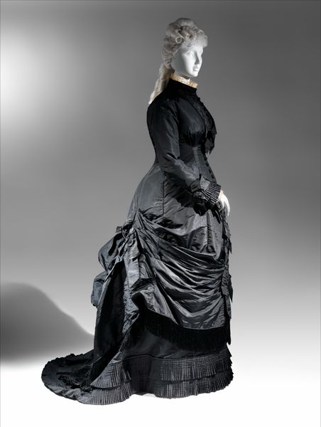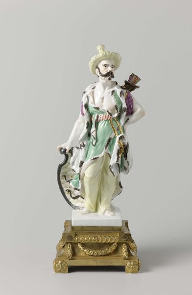 Curator: What a striking object. I am immediately drawn to its unusual colour palette and strange elegance. Editor: Today, we are examining "Figure in the shape of a woman with a hat", crafted sometime between 1911 and 1917 by the KPM, or Königliche Porzellan Manufaktur. It seems almost melancholy, doesn't it? Curator: Absolutely. The formal qualities speak volumes. The downward gaze, the cool blues, the delicate pearls – it conveys a profound sense of introspection. But I also note the crisp geometries of the hat compared to the texture in the dress. Editor: Let's not forget this is porcelain. KPM was a state-owned company, meaning this object's existence is inextricably linked to imperial patronage and, perhaps, a desire to reflect bourgeoise tastes and fashion. Consider the labour involved. Each stage of porcelain production was a complex process involving many different crafts people: the mould-makers, casters, painters. Curator: A powerful observation. However, isolating the material from its form diminishes the artist's intention. Look at the intentional contrast between the fluid lines of the gown and the sharp angles of the hat. This interplay suggests an underlying tension within the subject herself. Editor: And that hat isn't just any hat. The fashionable attire screams privilege, while the material reality hints at potential overproduction—KPM often sought to mass-produce luxury goods accessible to a growing middle class, while catering to tastes within elite circles. This reflects a society stratified by access to resources and labor, but the image is still, very stylish. Curator: Point taken, but the aesthetic unity is what captivates me. Every formal choice enhances this figure's contemplative essence. It beckons a formal assessment—a semiotic study. How do you react, seeing the finished object? Editor: The complexities are more pronounced to me. Recognizing the social framework reminds me the objects always encode their makers and patrons.