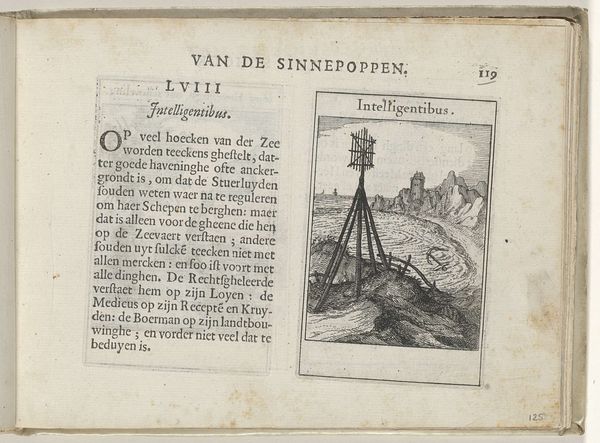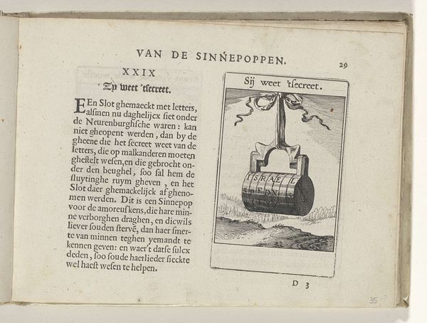 Curator: I'm struck by the sheer contrast in this print, the heavy lines of the plow dominating the composition. It feels so stark against the page. Editor: Well, that directness is purposeful. What we have here is "III Evertit sed aptat," a 1614 engraving on paper by Roemer Visscher, housed in the Rijksmuseum. Curator: Right. Visually, the dark engraving against the white is compelling; the texture creates such a palpable sense of materiality despite being a print. What’s intriguing is the formal treatment of this simple, agricultural object: the plow is centered, given this monumental quality through the print. Editor: Absolutely. In its time, such simple agricultural imagery was rooted in didactic symbolism—often serving as allegories to convey deeper social and ethical lessons to a growing merchant class. Curator: Precisely! Visscher carefully delineates line, shadow, and shape with intention, prompting close analysis that helps expose the larger narrative: something tears down so that other things may take root and be made. Editor: Yes, because the phrase "Evertit sed aptat" essentially means, "It destroys, but it fits." It invites consideration around the act of transforming land but also around social upheaval. The plow disrupts, turns everything over. It references an older order collapsing as well. Curator: Indeed. The plow is not only this raw and elemental thing of function; in Visscher's print, it stands as something symbolic in relation to society, of action. The strong tonal and tactile properties help draw our gaze again and again. Editor: For our contemporary ear, the print asks crucial questions: What is progress? How does something become progressive in the face of change? The placement on the page feels intimate, beckoning consideration in light of the sociopolitical transformations then, and, dare I say it, now. Curator: It’s quite captivating how effectively the print is balanced overall—not just visually—but by creating layers of intellectual questions for audiences to engage with! Editor: It really does give pause to all our preconceptions about progress! Thank you for illuminating these connections.