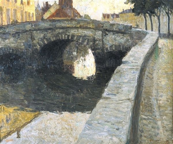 Othon Friesz's "The Pont Neuf, Paris" is an oil painting that captures the essence of early 20th-century Parisian life. Friesz uses visible brushstrokes and a thick impasto to give the scene a tangible, almost sculptural quality. The bridge itself, rendered in warm hues, contrasts with the cool blues and purples of the water and buildings, creating a dynamic interplay of color. The vigorous application of paint speaks to the artist's physical engagement with the canvas, embedding the work with a sense of immediacy. The composition, while seemingly straightforward, reveals Friesz's deep understanding of painterly traditions. There is a clear focus on the materiality of paint as a vehicle for expression. Friesz was not just representing a scene, but also celebrating the very act of painting. This emphasis on material and process challenges any strict separation between craft and fine art. It reminds us that even a seemingly simple landscape can be a profound exploration of the artist's hand and the inherent qualities of their chosen medium.