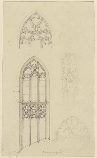 Karl Ballenberger made this drawing of custom windows using graphite on paper in the 19th century. The medium of graphite lends itself to the precise rendering required for architectural designs. We see detailed geometric patterns within the window, hinting at the craftsmanship involved in creating such ornate structures. Ballenberger's drawing speaks to the social context of architectural design in the 1800s. As industrialization progressed, there was a growing appreciation for skilled handcraftsmanship and the aesthetic of gothic architecture. The labor-intensive nature of creating custom windows by hand would have been significant. Understanding the materials and making processes involved allows us to appreciate the cultural significance of architectural design, and how the skills of designers and craftspeople can shape our built environment.