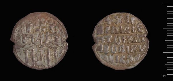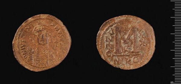 Curator: This fascinating artifact is a Half Follis of Justin I, created in Constantinople. Editor: It looks incredibly worn! The patina speaks volumes about its age and journey. Curator: Exactly! Coins like these were crucial for legitimizing the emperor's power through widespread circulation and visual representation. What does it say about the control of imagery? Editor: Well, the image of Justin I on this coin, even in its deteriorated state, projects an image of power sanctioned by divine authority, reflecting gendered ideals of leadership and the religious underpinnings of the state. Curator: We see how such artifacts were not merely currency, but also tools for disseminating political ideology, deeply intertwined with class and authority. They remind us of the power dynamics embedded in everyday objects. Editor: Indeed. It's remarkable to consider the ripple effects of such a small object on the broader societal landscape.