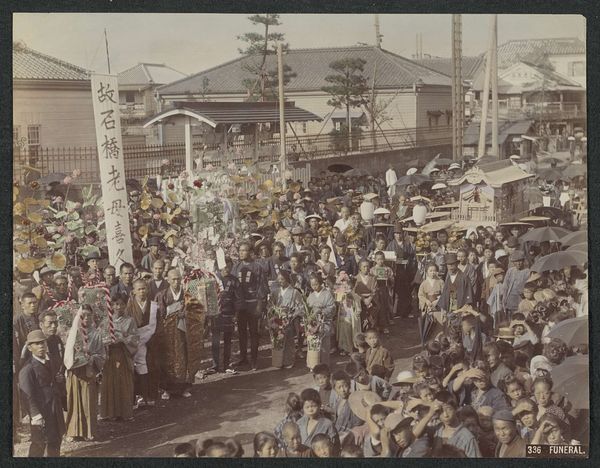 Editor: This gelatin-silver print, possibly from 1949, is titled "De net vrijgelaten president Soekarno rijdt onder grote belangstelling in een statige stoet Jogjakarta binnen," attributed to Associated Press. The immediate sense is of a triumphant procession, dense with cheering crowds. What do you make of the visual elements at play here? Curator: Formally, I note the dynamic use of perspective, directing the eye deep into the receding plane populated by serried ranks of people. The monochrome tonality further emphasizes the contrast between the dark figures and the lighter, receding buildings, thus structuring a visual rhythm. Observe how the composition directs the gaze primarily toward the vehicular forms. What significance do you attribute to these compositional decisions? Editor: It's fascinating how the cars dominate even amongst the large crowd. Could that positioning be an assertion of power? Or a different choice? Curator: It is the photograph that asserts the power dynamically via structural elements; in this formalist mode, our response to an artwork hinges on how its compositional and material features interact to affect us directly. Focus on the textures—the grain of the silver print itself, juxtaposed against the smooth sheen of the automobiles and the blurred impression of the thronging masses. Editor: I see it! So the deliberate arrangement and material choices contribute most to my emotional reading of the photo. Thank you, that really makes the work come alive. Curator: Precisely. A focus on such concrete components enhances our critical understanding.