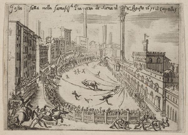 Curator: Right, let’s consider this rather busy print. It's attributed to Wierix, created in 1577, and is called "Van geboorte tot 16-jarige leeftijd: de composiete orde"– which roughly translates to "From Birth to Age 16: The Composite Order." It's a pen drawing engraving. Currently, you can find it at the Rijksmuseum. Editor: Wow, okay. My first thought is: what a playful yet also unsettling composition. So much energy, little bodies sprawling all over the place. It feels a bit like a Hieronymus Bosch painting, but if Bosch decided to design a playground. Curator: I appreciate that. I think it's important to understand this image in the context of the 16th century, which saw an increase in discussions around education and societal expectations of children. We can examine, for instance, the Latin inscriptions that serve as captions and analyze the architecture. They frame children within humanist principles, classical order, while implying children are naturally directed toward struggle and shadowed training. Editor: You're absolutely right about the inscriptions, but what about this sense of regulated chaos? All these kids are supposedly learning, but look at the exuberance! They're tumbling, playing games that almost seem dangerous. It's like childhood as this untamed force contained within a very structured garden. Is Wierix celebrating this vital life energy, or is he warning against its inherent messiness? Curator: That tension, that ambivalence, is exactly what makes the artwork so compelling. It points to a fundamental struggle inherent in social pedagogy; how do we cultivate without stifling, nurture without controlling? The grid and axial designs are a representation of Humanist efforts toward achieving ideal life. I believe this piece presents a nuanced social commentary on raising individuals to perform the societal ideal, a narrative complicated by the depiction of the uninhibited play of childhood, an experience in conflict with this goal. Editor: Right, and it does it with such an incredible eye for detail, capturing every little expression, every fleeting moment. The architectural structures also make me think of the complex support systems –the metaphorical hothouses – created to raise good citizens, and I find myself feeling protective and claustrophobic simultaneously! I have conflicting feelings towards the piece and my reading changes daily. Curator: Absolutely, I'm always moved by these types of pieces. What’s fascinating is its relevance, centuries later. It compels us to confront perennial questions about agency, nurture, freedom, control. It speaks to our collective history and our personal present. Editor: So true. It’s the kind of artwork that keeps revealing layers of meaning with each viewing. I'm finding its emotional and historical intelligence really impressive and resonant, which in a way I wasn’t quite expecting.