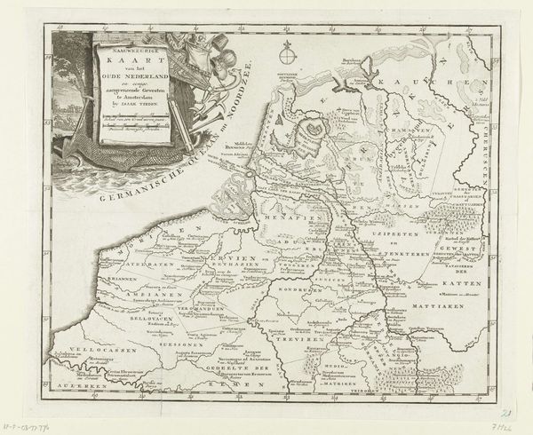 Editor: This is "Kaart van de gebieden rond de Zuiderzee getroffen door de watersnood van 1825," a map created between 1825 and 1826 by Daniël (II) Veelwaard. It's an engraving, currently held at the Rijksmuseum. It's a rather sobering image, depicting the areas affected by the flood. What story does this map tell you? Curator: It tells a potent story about human vulnerability and the political response to natural disasters. Beyond being a geographical record, it’s a piece of public history. Consider how this map functions as both a commemorative object and a piece of propaganda, potentially influencing public opinion and resource allocation in the wake of the Zuiderzee flood. It subtly highlights the affected areas but could also indirectly showcase the efforts of those in power to respond to the crisis. Editor: So, it's not just about showing what was lost? Curator: Precisely. It’s about shaping a narrative. Think about who commissioned this map, who was intended to view it, and what messages they might have received. Maps, historically, were powerful tools of statecraft and social control. How do you think the inclusion and exclusion of specific details may have influenced viewers? Editor: I hadn't considered the selection of details as a form of messaging! It’s like, every line and name has a purpose beyond just geographical accuracy. Curator: Exactly. It encourages us to analyze whose perspectives are amplified, and which are silenced, by its very design. Editor: It changes my perspective seeing this piece as something that communicates beyond just the basic cartography! Thanks for highlighting the historical layers embedded within this engraving. Curator: Indeed! Seeing art in its social context makes it much more interesting.