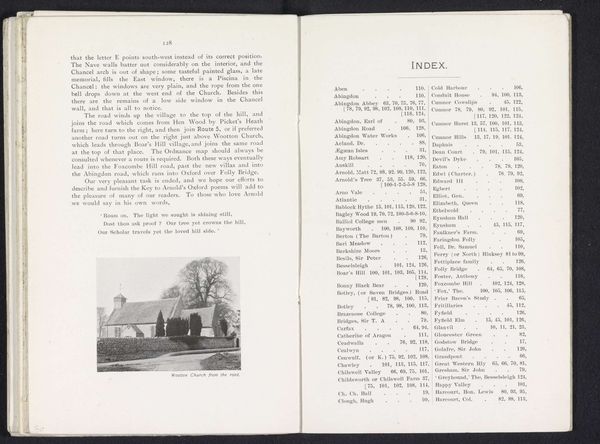 Editor: Looking at this open book, printed before 1912, with Henry W. Taunt listed as the author and illustrator, I'm struck by the stillness captured in these landscape scenes, especially of Iffley Church and Mill. They evoke a real sense of timelessness. What catches your eye? Curator: I’m immediately drawn to the layering of cultural memory embedded within these images. Churches and mills weren't just buildings, but symbols laden with meaning. The church, a bastion of spiritual and community identity; the mill, a signifier of industry and transformation. Editor: So, you're saying it’s more than just a pretty landscape? Curator: Precisely! Taunt’s photographs offer glimpses into a specific time, yet resonate with the enduring symbolic power these structures held – and in some ways, still hold. Think about how the church often visually dominates the composition; is this a deliberate emphasis of spiritual authority within the community, do you think? Editor: That’s a great point, the positioning definitely draws your eye upwards. The soft focus almost idealizes it, giving the image an ethereal feel, wouldn't you agree? Curator: Yes, and this adds another layer, because soft focus evokes associations with sentimentality, nostalgia for an idealized rural past. Perhaps a subtle commentary on industrial progress changing the very landscapes he depicts. Does this add anything new to your view? Editor: Definitely! It layers in the human element so well. The weight these seemingly simple buildings had, or still have, is fascinating! Curator: And that, perhaps, is what Taunt wanted to capture: not just a place, but its lingering emotional presence in the cultural consciousness.