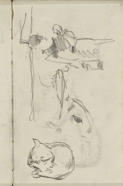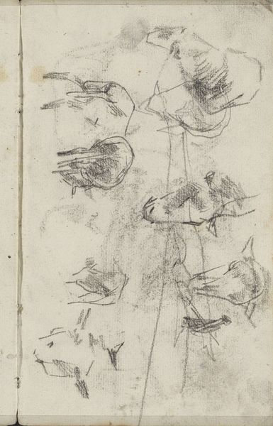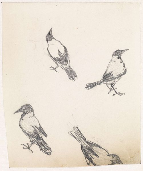 "Drie schetsen van een man" was made by Simon Andreas Krausz using graphite. The composition is minimal, a triptych of rapid sketches laid out horizontally. The drawing captures a man in three different poses, each rendered with sparse and economic lines. The figures are not densely shaded, which creates an open and airy feel across the surface. There’s a rawness in the artist’s direct, almost hurried marks, an emphasis on capturing form and essence, rather than detail. This sketch aligns with a period interest in empiricism and observation of the external world. The artist is investigating the subject through different perspectives to decipher and grasp the fundamental aspects of his appearance. This fragmentary approach mirrors broader philosophical trends that began to question the possibility of complete and objective knowledge, suggesting that reality can only be understood through multiple, incomplete perspectives. The work acknowledges the inherent subjectivity in perception.