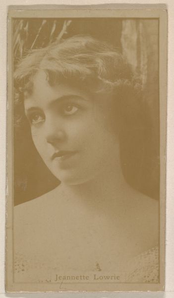 Curator: This is "Mlle. Detchen," an albumen print made by W. Duke, Sons & Co. sometime between 1890 and 1895, part of a series promoting Duke Cigarettes through images of actors and actresses. Editor: There's a captivating sepia tone that lends this portrait a melancholic air, don't you think? And the intimate scale – it feels like a glimpse into another time. Curator: Indeed. The albumen print was a very specific technology, where the paper was coated with egg white to create a glossy surface for the photographic emulsion. These cards were churned out in enormous quantities, a disposable piece of material culture meant to drive consumption. What strikes me is the mass production attempting to create individual appeal. Editor: Precisely! The subject isn't just Mlle. Detchen; it's the commodification of female performers and the burgeoning advertising industry. We're looking at the performance of identity within a capitalist structure. What power dynamics are at play here? Her slight smile, that suggestive glance - is this her choice, or manufactured consent? Curator: The labor conditions surrounding these print factories are worth exploring, too. The albumen process involved workers – mostly women, likely – handling hazardous chemicals. We have to consider their exploitation, their exposure. Was there a trade union presence influencing work conditions at Duke? Editor: It certainly prompts reflection on labour, visibility, and gendered expectations of beauty. How do we contend with the legacy of these images, understanding they existed for such capitalistic and often exploitative ends? Curator: It underscores the value we place on artifacts themselves, despite the often obscured labor processes. Thank you. It is essential to look at these everyday prints critically, asking questions not only of what is represented, but how it was created, and who it served. Editor: Yes, the ways we understand a single photographic artwork change vastly once situated within that context. I’ll carry these points forward in how I experience the portrait and the legacy of representation within image making today.