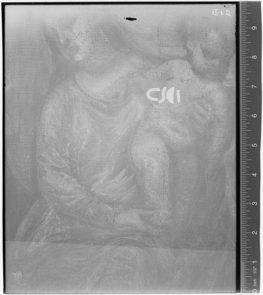 Editor: Here we see an X-radiograph of “Madonna and Child” by Gerard David. It’s interesting to see a painting through a medical lens, so to speak. What does this radiographic view reveal about the artwork and its context? Curator: Well, it shows us more than just the surface. We see the artist’s process, revisions, perhaps even underdrawings. It's also a product of our time, a way for institutions like the Harvard Art Museums to analyze and preserve artworks, shaping how we understand them. How does it change your perception of the painting? Editor: It makes me think about the hidden stories within art, and how technology influences our understanding of art history. Curator: Exactly. It reminds us that art isn't static but constantly reinterpreted through evolving cultural and institutional practices.