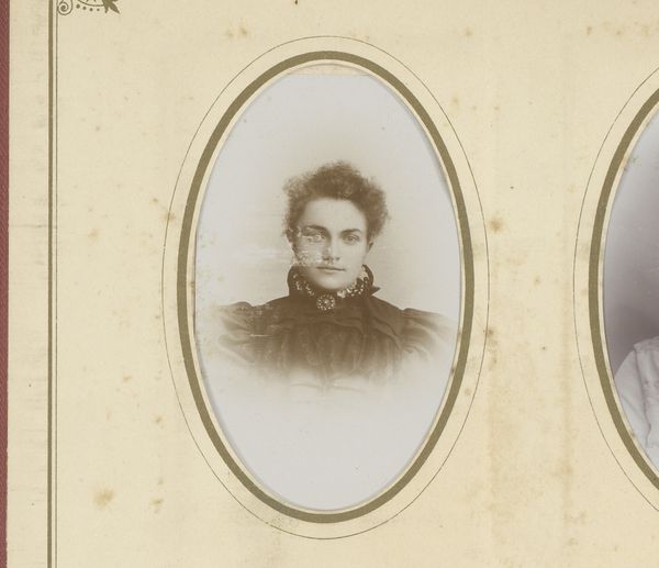 Léon Langlois captured this portrait of a woman with photography, creating an image that speaks volumes through its formal arrangement. The subject is positioned centrally within a vertical rectangular frame, her gaze meeting ours directly. The sepia tones lend the photograph a soft, almost dreamlike quality, while the sharp focus on the woman’s face and attire draws our attention to the details of her appearance. Note the high collar and the intricate lacework, these are elements that speak to the fashion and social codes of the time. Langlois’s work can be appreciated as a study in form and texture, where light and shadow play to define shape and volume. The photograph invites us to consider how portraits function as both personal records and cultural artifacts, reflecting the values and aesthetics of their historical context. As we examine the photograph we find it’s not just a rendering of a person but also a commentary on representation itself.