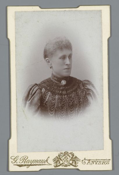 Daniel Nyblin made this small photographic portrait of a woman sometime between the late 19th and early 20th centuries. Nyblin was a Finnish photographer, active in a period when photography was becoming increasingly accessible but still carried a certain social weight. Portraiture, in particular, was closely tied to notions of identity and social standing. The image, with its formal composition and the woman’s poised demeanor, reflects the conventions of bourgeois portraiture. Consider how the subject is presented: her hairstyle, the cut of her dress, and her direct gaze – all signs of the sitter’s social class and how she wants to be seen. To truly understand this image, one would need to delve into the social history of photography in Finland. Researching the archives of photographic studios, and the social history of portraiture, would give us a clearer picture of the kind of meaning this image might have had at the time.