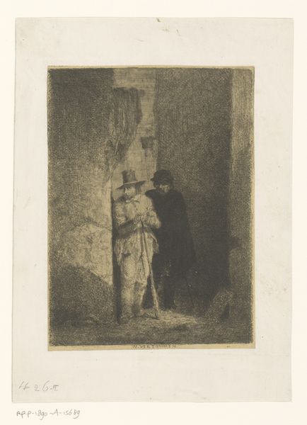 This etching of an old woman leaning on a stick in a doorway was made by Mary Hector Rupert Cantineau, sometime around the turn of the 20th century. It's all about the lines, isn't it? They create the values and define the shapes in a really direct, immediate way. Look at the way the lines vary in thickness and direction. See how they build up the shadows on the woman's face and clothing, and how they give a sense of depth to the doorway. These lines create this amazing texture. The texture almost feels like you could reach out and touch it. It's not just about what the image represents, but how it feels to look at it. The way the artist uses line to create this sense of depth and shadow reminds me of the etchings of Whistler or some of Käthe Kollwitz's prints. All of these artists embrace the possibilities of a repeated mark to create an emotional resonance.