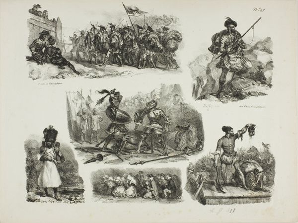 Auguste Raffet created this sheet of sketches, now at the Art Institute of Chicago, capturing scenes rife with potent symbols. Note the recurring motif of figures kneeling or in supplication. Observe the condemned man kneeling in prayer before his execution. This posture echoes across centuries, seen in ancient Roman depictions of defeated enemies or Christian iconography of saints in repentance. It is a primal sign of submission, a physical manifestation of power dynamics deeply embedded in our collective consciousness. The motif shifts, takes on new meanings, but the core resonance remains. Consider the powerful emotional and psychological effect of this imagery. These postures tap into deep-seated instincts and memories. The kneeling figure is a recurring symbol, a visual echo reverberating through history, transformed and reinterpreted, yet eternally linked to fundamental human experiences of power, vulnerability, and faith.