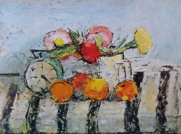 Ion Pacea, the Romanian artist, painted “White Flowers and Apples” with oils on canvas. Pacea, a Jew living in Romania during World War II, faced considerable adversity as his work was labeled as degenerate and he was prohibited from exhibiting it. This piece exemplifies the tensions in Pacea’s life and art. The flowers, with their white blooms, appear joyful and serene; they sit in a decorative pitcher. Yet, the red background suggests the intense emotions he experienced during the war. The apples add a feeling of warmth and the simple pleasures of life. Pacea developed an abstract style to cope with the political climate and express his identity. His paintings speak to the ways that artists use their work to create meaning in times of political struggle and personal reflection.