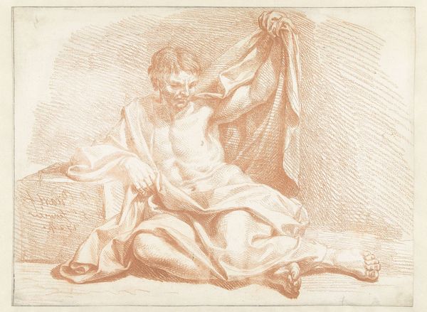 Editor: Right now we’re looking at "Study for Clovis," created by Isidore Pils sometime between 1820 and 1875. It's a pencil drawing, almost ghostly in its effect. I’m struck by the figure’s vulnerability, and that simple drape... So, what story does this study whisper to you? Curator: Whispers, indeed. To me, this sketch feels like a delicate echo of grand ambition. Pils was preparing for a series of large-scale wall paintings. See how the lines, though faint, capture a palpable sense of muscle and bone? He's feeling out the figure, like a sculptor coaxing a form from clay. It makes me wonder, what was Pils wrestling with internally as he envisioned Clovis? Did he see him as a brute conqueror or a divinely inspired leader? Editor: That’s interesting – I was so focused on the softness of the lines and the way the figure is partially hidden that the "conqueror" angle didn't even occur to me. I suppose that just shows the power a medium like drawing can have. Curator: Precisely. The subtleness lets us meet Clovis halfway. If Pils had already settled on Clovis’ nature before beginning his process, he might have sculpted the figure using more confident line work. The sketch gives us something of a shared experience with the artistic process, don’t you think? Now, notice how his other, unrelated study is on the reverse. That seems like quite an unusual, yet charming find! Editor: It does! It almost feels like finding hidden treasure, something deeply intimate about seeing two different artistic explorations sharing the same space. It's like eavesdropping on the artist’s thoughts! Curator: An accidental portal! What I love about this study is how it reminds us that even behind the most imposing historical figures, there’s vulnerability and doubt—qualities familiar to all of us. Editor: Definitely. This sketch gave me new perspective on seeing how history is constructed, but, more importantly, on being a human.