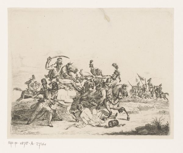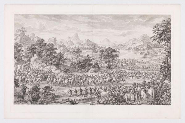 Carel Christiaan Antony Last made this print in 1849 for a student almanac in Leiden. The scene presents a shooting practice, a common activity for student associations in the 19th century Netherlands. These associations were more than social clubs; they were spaces where young men from privileged backgrounds forged identities rooted in camaraderie and national pride. Look closely, and you'll notice the stark gender divide: men dominate the shooting range, while women and children are relegated to the sidelines, embodying traditional domestic roles. The military drills could be read as a means to practice and prepare for their potential roles in national defense. The print offers a glimpse into a very specific social world, one where class, gender, and national identity intersect in complex ways. It's a reminder that even leisure activities can be deeply embedded in the power structures of society, shaping who gets to participate and who remains on the periphery.