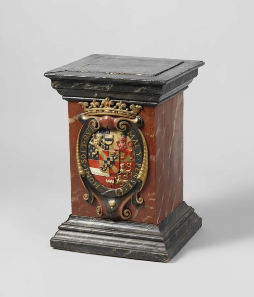 Editor: Here we have “Navigation,” a metal sculpture from around 1590 to 1596, made by an anonymous artist and displayed here at the Rijksmuseum. It looks almost like a treasure chest in miniature. What stands out to you about it? Curator: Immediately striking is the artist’s engagement with form and surface. Note how the cube of the chest contrasts with the circular lid. Consider too, the treatment of the metal itself: the rough texture, the deliberately imperfect castings which introduce shadow and play of light across the object. Does this perhaps evoke the uneven nature of life at sea? Editor: It's interesting you focus on the play of light and shadow. The craftsmanship, although seemingly simple, reveals intricate patterns when viewed closely. Are these symmetrical arrangements purely decorative? Curator: Symmetry certainly plays a role, establishing a formal structure. Yet, the asymmetry introduced by the artist’s handling of the metal generates a dynamic tension. The material's intrinsic qualities resist perfect symmetry. Observe the placement of these decorative motifs: how they guide the eye around the sculpture, emphasizing its three-dimensional nature. Editor: I see that now! I initially saw it just as decoration, but it also brings this sort of controlled chaos to the design. Do you think the artist intended to capture this chaos? Curator: Intent is often elusive, but the effects are undeniably present. By engaging the materiality, surface, and form of the object itself, the work generates tension and vitality. Its success is through visual organization rather than the narrative value of such content. Consider it as a study in contrasts, a material experiment, if you will. Editor: Thanks. Looking at the interplay between the formal and imperfect design helps me think about medieval art in a completely different light! Curator: Indeed, a close reading of artistic choices through line, shape and design can broaden our interpretation.