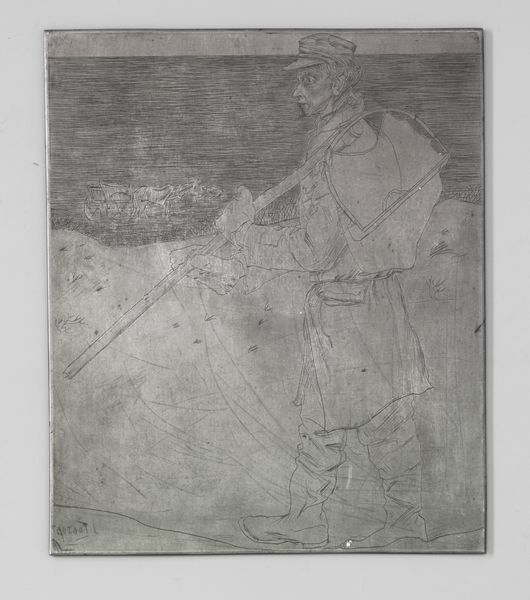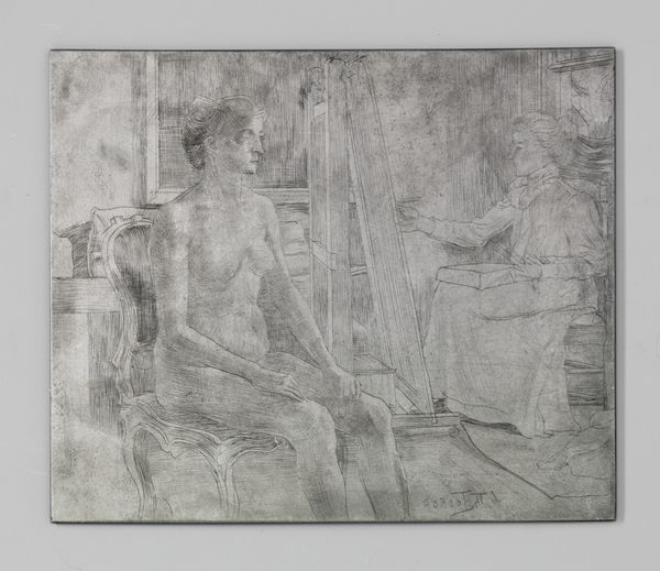 Curator: Welcome. We're standing before "Young Woman Leaning on a Pillow" by Jan Toorop, created sometime before 1928. It's currently housed here at the Rijksmuseum, a delicate drawing rendered in graphite. Editor: It’s ethereal, isn’t it? The gray monochrome lends the whole piece an almost ghostly quality. You can see how light the lines are, very dreamlike. She seems lost in thought. Curator: Toorop was a key figure in the Dutch Symbolist movement and also in the development of Art Nouveau. Given that this drawing employs fine, flowing lines it’s no wonder we find this piece under the style of Art Nouveau. Toorop gained attention for the use of symbolism, drawing inspiration from literature and mysticism and responding to social themes that echoed modern ideals. Editor: The dreamy nature certainly adds to that idea of symbolic value. You wonder what she's contemplating in this rather passive pose. Considering it was produced before 1928, what was expected of women in terms of behavior, thinking, and agency? It's worth looking into those restrictions, to then pose how such creative thinkers of that period were impacted. Curator: Absolutely. It invites us to consider her potential inner world, especially given Toorop's broader body of work which frequently tackled themes of societal change and spirituality. His connection to both Symbolism and Art Nouveau provided him with a broad visual vocabulary to express these ideas. Editor: And what of that pillow, too? It’s supporting her physically, but I’m compelled to consider the social and psychological implications of those around the subject at the time this art piece was realized. Who exactly had the power to allow the subject the comfort this artwork presents? It speaks to a very specific societal position, one we ought to bring up when considering art from a political position. Curator: The pillow does seem to ground her in this ethereal space. It speaks to the luxury of contemplation and leisure available to certain classes at that time, which absolutely fits into Toorop’s position to examine these themes, to further cement how this piece encourages a complex look into cultural attitudes in the pre-war era. Editor: I agree. Toorop's legacy remains relevant today, for it showcases the potent ways we as human beings negotiate our personal, cultural, and societal tensions. Curator: His work, this piece included, acts as an invaluable source of introspection into an era undergoing fundamental transformations.