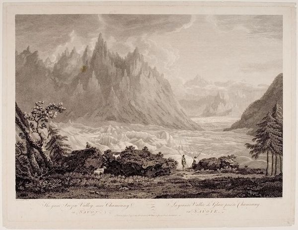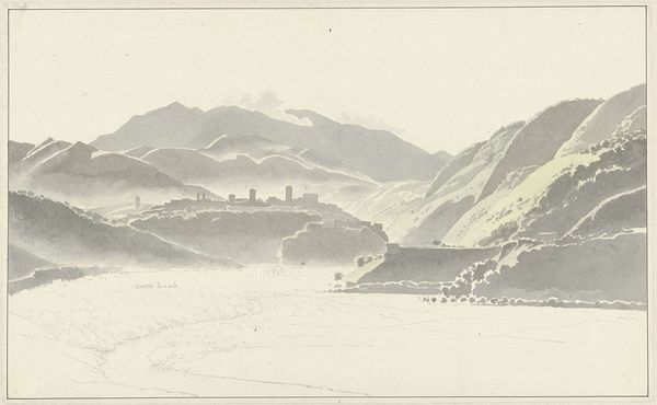 Editor: This is Samuel Middiman's "Head of Ullswater, Patterdale and mountain Helvellyn". It feels so serene, almost untouched. What's your take on it? Curator: I see a landscape ripe with the tensions of ownership and access. Think about the Enclosure Acts happening around this time; who is this landscape for? Who benefits from its depiction? Editor: So, you're saying this idyllic scene might mask a story of dispossession? Curator: Precisely. Consider also the romanticization of nature – does it serve to distract from social injustices of the time? It's a beautiful image, but let's not forget the power dynamics at play. Editor: That gives me a lot to think about – seeing beauty and questioning its context simultaneously. Thanks! Curator: My pleasure. Art invites us to be critical thinkers.
