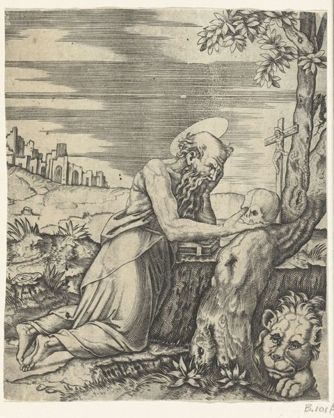 This is Christoffel van Sichem the Younger's woodcut depicting Saint Posthumius as a hermit, made in the Netherlands in the 17th century. It shows the saint kneeling in prayer in his isolated cave, with an angel at his side bearing sustenance. The image reflects a fascination with hermeticism and monasticism common in the Catholic Netherlands at this time, a theme which was also explored through emblem books and prints. The politics of imagery in the 17th century was tied to complex religious identities. Sichem’s print speaks to the Catholic Counter-Reformation, reaffirming the importance of saints, hermits and angels, whose significance had been downplayed by Protestants. Understanding this print requires historical research, looking into the symbolic language of religious iconography and the social conditions that shaped artistic production in the early modern Netherlands. Through such investigation, we recognize that art is deeply embedded in its time.