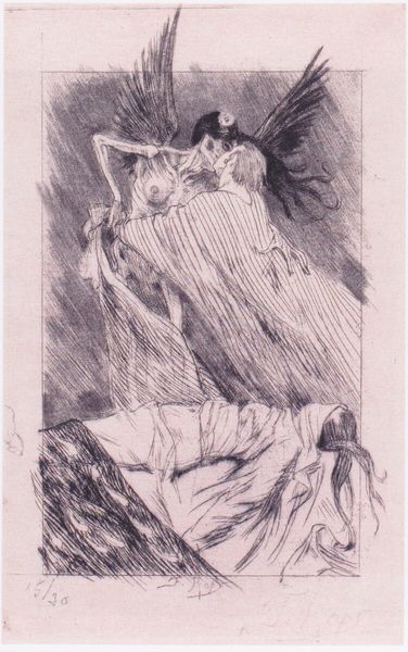 Arthur Bowen Davies made this print, Moonlight on the Grassy Bank, using a process of etching to build up tone and texture. It's like he’s feeling his way through the dark, guided by the moon. Look at how he’s built up these dense areas of shadow on the right, pulling our eye to the negative space of the lighter figure on the left. The bodies almost seem to emerge from the landscape, like nymphs awaking from a dream. The etching feels soft, almost like velvet. You can see how the ink bleeds into the paper, creating a kind of hazy atmosphere. It's loose and free, as if he’s not trying to nail anything down, just letting it be. I’m reminded of Odilon Redon’s prints, there is a similar symbolism, but Davies feels more grounded, more connected to the earth. It’s that earthy quality, that’s the magic for me. The print is like a conversation, an invitation to wonder.