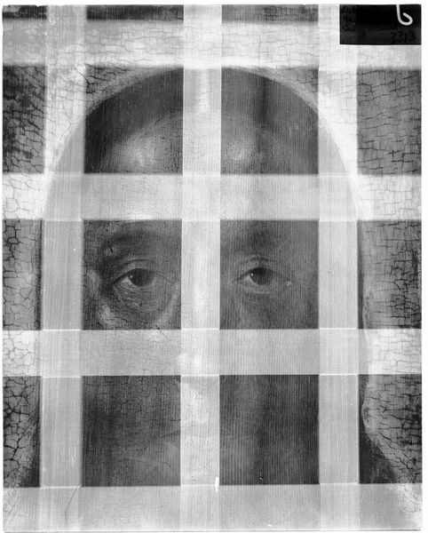 Curator: Here we have an X-radiograph of a "Male Portrait (fragment)" by Bartolomé Esteban Murillo. The image itself is a 14 by 17-inch film. Editor: The X-ray gives it an eerie quality, like a ghost trapped in time. Curator: Exactly! The X-radiograph reveals the underpainting and the material layers beneath the surface. We can see the artist's working process, the canvas texture, and the density of the pigments used. This also shows us how conservation efforts might impact the materials. Editor: It's fascinating to think about the social implications of preservation – who decides what gets saved, and what messages does that send to future generations? It also makes you wonder about the ethics of intervening with an artist's original intent. Curator: Absolutely. And this x-ray technology allows a deeper understanding of materiality and artistic labor. Editor: It makes you think about the portrait's journey through the hands of collectors, institutions, and conservators. Curator: Indeed, an unseen history unveiled through scientific means.