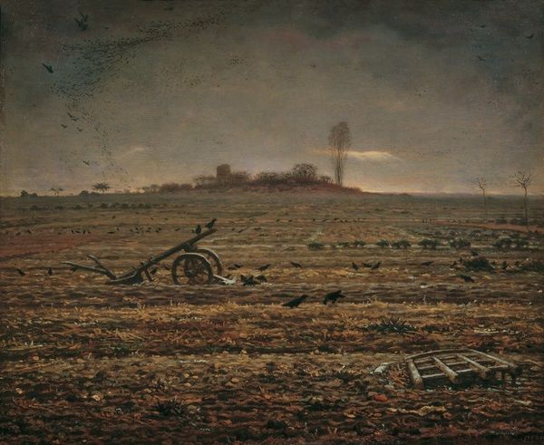 This untitled painting was made with oil on canvas by Zdzislaw Beksinski, though we don’t know exactly when. The browns and ochres create a scene that feels apocalyptic, somewhere between earth and hell, where the sky seems to be smoldering. Up close, you can see how the paint is built up in layers, with dark washes underneath and then lighter tones dragged across the surface. It’s like he’s sculpting the image as much as painting it, creating all this texture that gives the work a visceral, almost repulsive quality. Look at the skulls in the foreground, each one meticulously rendered, yet dissolving into the overall morass of decay. They evoke Hieronymus Bosch, don’t they? Beksinski’s work can be pretty bleak, but it's also a reminder of our own mortality. His paintings invite us to confront the uncomfortable truths about life, death, and what might lie beyond. They remain open, refusing to offer any easy answers, but inviting us to bring our own interpretations and feelings to the canvas.
