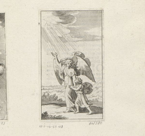 Sébastien Leclerc I created this print titled 'Uitstorting van de Heilige Geest' sometime between 1637 and 1714. The composition is dominated by a vertical orientation, typical of the printmaking format, with a central gathering of figures arranged in a hierarchical structure that draws the eye upward. Leclerc uses line to create texture and shadow. Strong diagonal lines evoke a sense of divine light and energy emanating from above, where a dove, a traditional symbol of the Holy Spirit, descends. The figures below react with gestures of awe, their faces etched with expressions ranging from reverence to astonishment. The artist masterfully uses the interplay of light and shadow to emphasize the emotional intensity of the scene, a Baroque aesthetic aimed at eliciting a powerful response in the viewer. Leclerc uses the visual language of his time, full of codified gestures and symbols that were immediately legible to his audience. This piece, beyond its religious subject, engages with the broader discourse of representation and spectatorship, reflecting how images mediate experience.