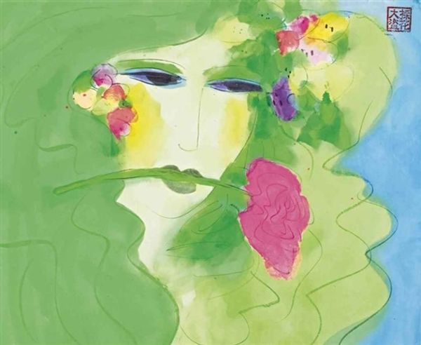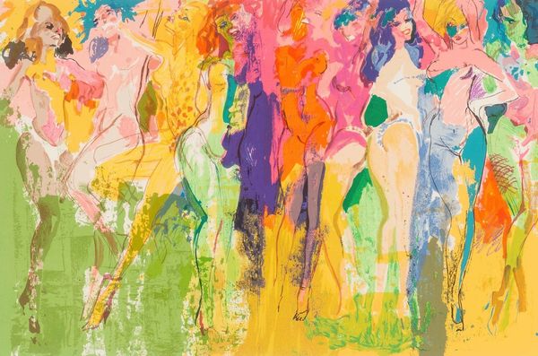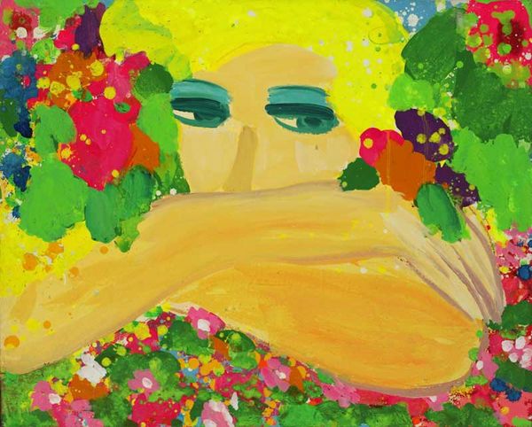 Walasse Ting made this painting, "Two Angels," with acrylic on canvas. Ting was part of the CoBrA movement, so-called because it involved artists hailing from Copenhagen, Brussels, and Amsterdam. Looking at the thick, tactile way the paint is applied, you can see how Ting embraced spontaneity. There are clear signs of the hand, the artist's gestures recorded in the drips and daubs. The blooms of color are applied almost like makeup to the female figures. While acrylic paint is a relatively modern, industrially produced material, here it is used in a way that harkens back to the traditions of oil painting, but with an eye to mass consumption and commercial printing. Ting’s canvases were intentionally affordable, allowing him to reach a wide audience. He also made prints. The playful use of color and the simplified forms undermine any lingering hierarchy between art and commerce.