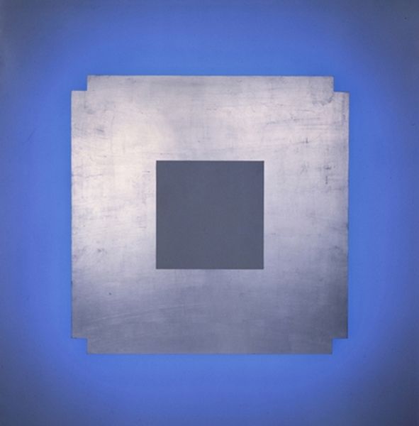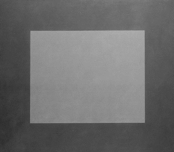 Editor: So this is Josef Albers' "Homage to the Square (Greek Island)," from 1957, painted with acrylic. It's quite calming, almost meditative, with its simple concentric squares. What do you see in this piece, looking at it from an iconographic perspective? Curator: Albers offers us a potent study in color psychology and visual memory. Notice how the cool blues recede, creating a sense of depth, and how the central white square seems to float. Considering the title, “Greek Island,” the color choices likely weren't arbitrary. What might the blue signify, culturally? Editor: The sea, perhaps? Or the sky over the islands? It does feel very Mediterranean. Curator: Precisely. And white? Think of the ubiquitous whitewashed buildings clinging to cliffs, reflecting the intense sunlight. Albers isn’t merely presenting abstract shapes; he’s tapping into a shared cultural visual vocabulary. These colours evoke specific places and associated emotions. Do you think the title enhances or detracts from the viewer's perception? Editor: It definitely focuses my attention, providing a lens to interpret the colours, rather than seeing it as a purely formal exercise. I hadn't really thought about the impact of titles before in this way. Curator: It provides another layer of symbolic weight. It's a prompt, directing us to seek deeper meaning. Even seemingly simple abstractions often carry complex layers of cultural resonance. Editor: So it’s not just about what’s visually present, but also about what those visuals evoke from shared cultural knowledge. That’s fascinating. Curator: Indeed. Art operates as a powerful shorthand, condensing history, memory, and emotion into visual form.