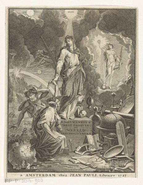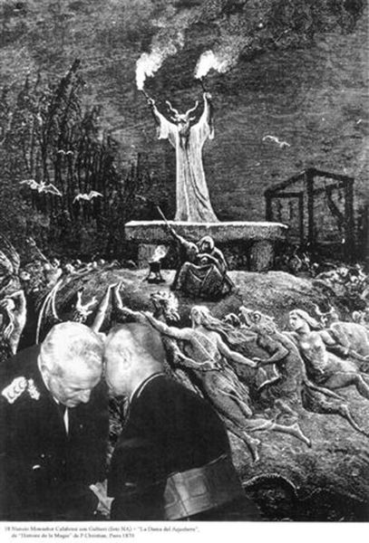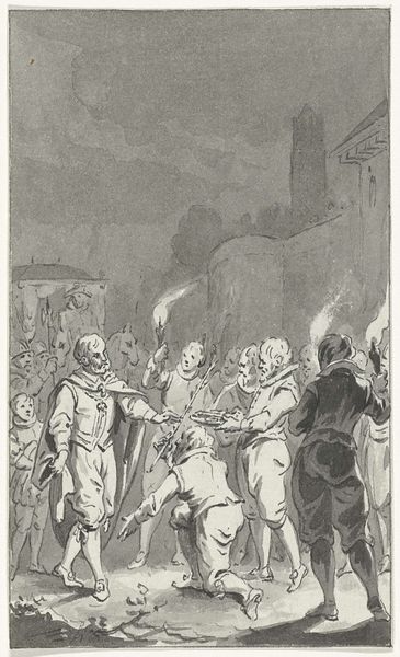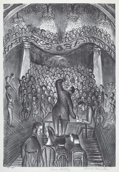 Editor: This print by León Ferrari, made with ink on paper, depicts a chaotic scene of figures beneath a robed character. The textures seem rough. What can you tell me about the materials and their use here? Curator: Well, consider the source. This is a reproduction of an illustration, likely from a magazine. The process of mass printing, the consumption of images... how does that contextualize Ferrari’s decision to use this specific imagery? Editor: So, you are saying that the medium of mass production itself is part of the message? Curator: Precisely! Think about the labor involved, the dissemination, the challenging of traditional art boundaries by incorporating this 'low' art form. Editor: I see! It changes how I view the piece entirely. Curator: It's about understanding the means of production, and how it shapes our understanding of the artwork.