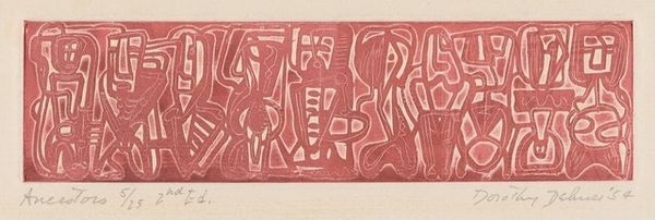 Dorothy Dehner made this print titled 'Ancestors' in 1953. The stark contrast between the black ink and the white paper is so striking! It’s like a conversation happening right before your eyes. You know, there's something about black and white art that just strips everything down to its essence. The way Dehner carves out these figures with such bold, graphic lines... it's all about shape and form, isn't it? It reminds me that artmaking is a process, a dance between intention and accident. Look at how she repeats and varies the shapes. Each figure seems to have its own story, its own personality, even though they're all made from the same basic elements. It's about rhythm, about finding the right balance between chaos and control. Dehner's work reminds me a little of Louise Bourgeois, especially her use of totemic forms and her exploration of personal history. They both understood how art could be a way of working through emotions, of making sense of the past. But ultimately, art is a space for ambiguity, and I think that's a strength.